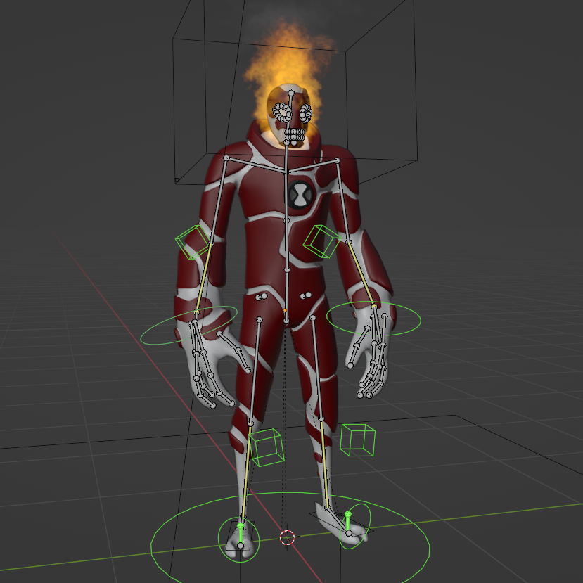 HeatBlast from Ben 10 rigged blend file with head fire simulation